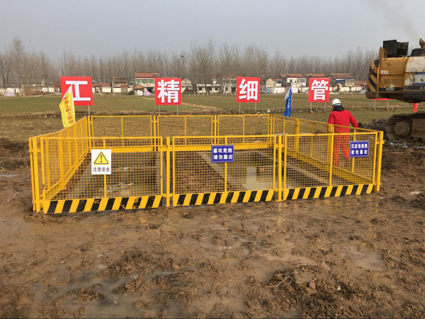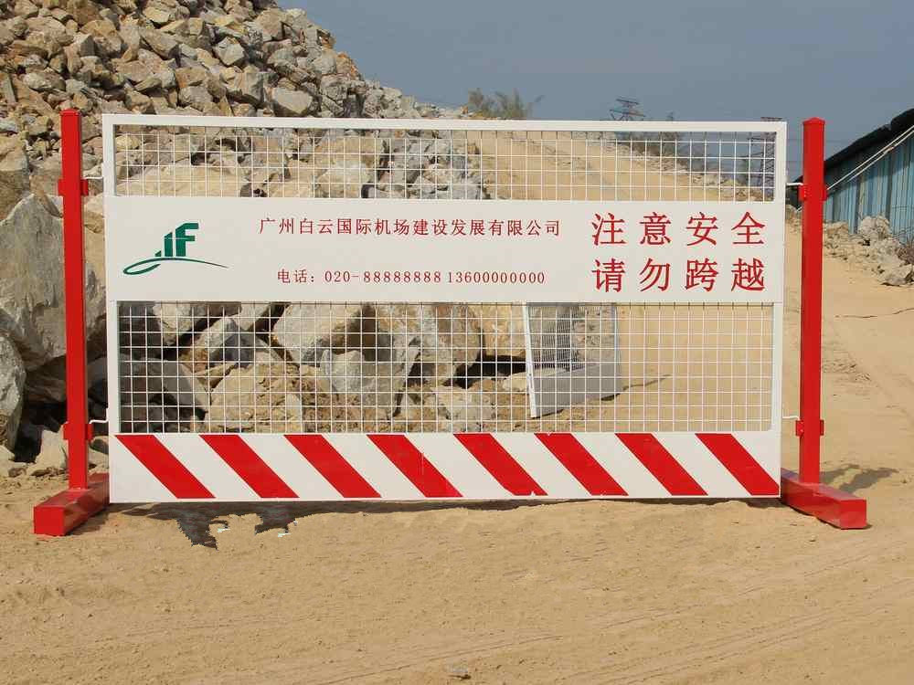 网片设计为黄色、立柱为红色,均为喷绘,以达到红白相间的警示效果。基坑临边护护栏适用于基坑周边区域的围护及施工区域的隔离分隔,它结构简洁,安装使用方便,美观大方,质量安全可靠,可重复使用,符合安全生产保证体系要求。